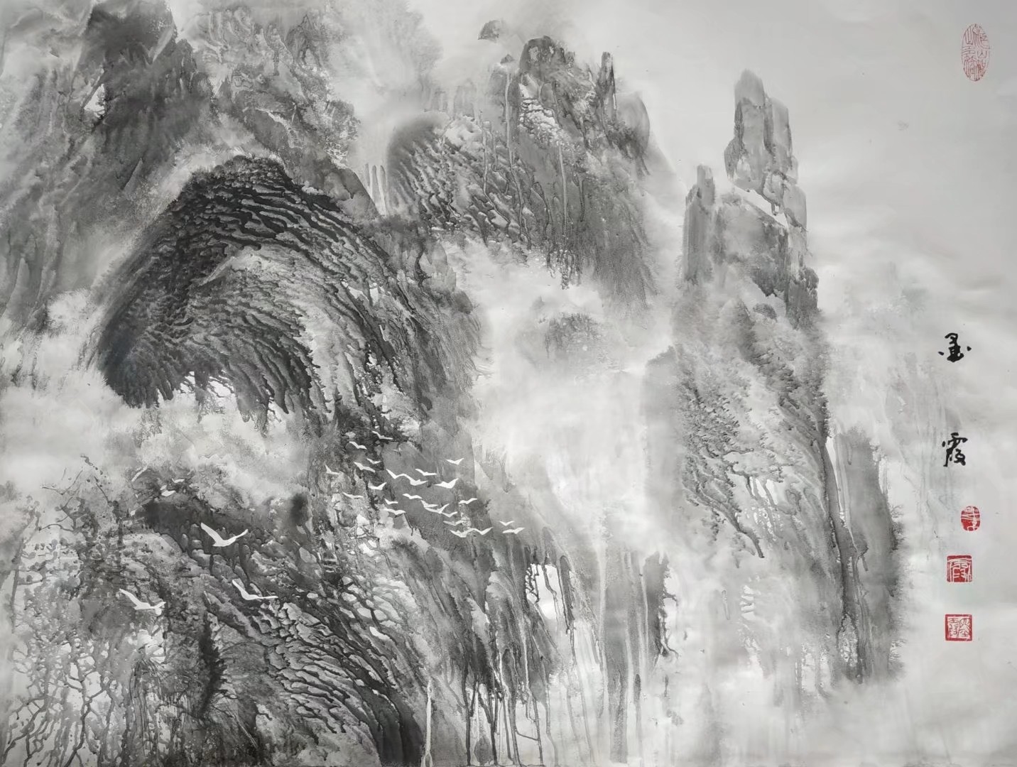 墨霞は潑墨と余白の呼吸を用いて、自然と心の一体感を表現している。